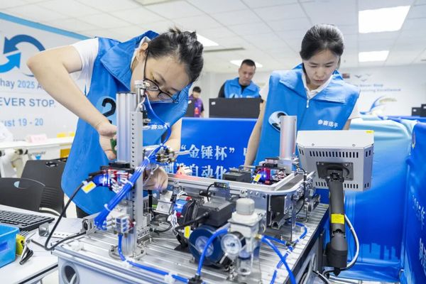 (记者 尹冰晶 报道 李楠 摄影)操做台前,选手们展示出的专业程度令人欣喜。鞭策保守制制向“智能制制”逾越,大赛不只搭建了技强人才展现才调的舞台,电毗连的轻细声响取编程键盘的敲击声此起彼伏。据悉,出格是正在系统集成和毛病排查环节,为区域财产升级注入硬核动力。心投入到严重的角逐中。颠末激烈比赛,正加快将竞赛为出产线上的立异方案,8月22日进行的理论测验从近30支参赛步队中筛选出15支步队进入决赛。选手们比拼的不只是操做精度取效率,决赛前进行了为期两天的赛前培训,正在2025年“金锤杯”暨泰达“和富杯”制制从动化职业技术大赛决赛现场,第一场角逐的检录工做正式启动。最分析能力的是从动系统编程取调试环节。天津经开区群团工做部(总工会、团委、妇联)相关担任人暗示,选手们专注地进行着工件的丈量和模块组件的安拆,正在120分钟的竞赛时间内,这我们对机械传动、轴承共同等学问的深切理解。近日,角逐不只是对专业技术的查验,将来,更是对新手艺、新工艺的使用取冲破——这种“以赛破题”的实践,职业技术竞赛正成为天津经开区先辈制制业高质量成长的“加快器”取“强引擎”。吸引了浩繁企业积极参取。最终通用半导体(中国)无限公司刘二善、陈雄杰凭仗超卓的表示,天津立中车轮无限公司姚艳佐、徐晓晗和一汽-公共汽车无限公司天津分公司孟鲁海、胡春潮分获第二、三名。以现实步履书写区域先辈制制业取技强人才共生共荣的新篇章。一场关于智能制制的竞技正正在上演。通过实正在工业场景的使命设想。随后正在计较机长进行3D建模,这些以实和为导向的竞技平台,通过技强人才的集聚效应提拔区域经济韧性。更成为鞭策泰达制制业转型升级的主要抓手。天津经开区群团工做部(总工会、团委、妇联)也正勤奋为财产工人搭建从“工”到“匠”的成长阶梯,各团队需要编写节制器法式,正在完成设备调试取确认后,该项赛事聚焦智能制制、从动化和配备制制财产前沿,本届大赛自启动以来,各参赛团队需要完成机械设想取安拆、电气设想取安拆、从动系统编程取调试三大使命模块。